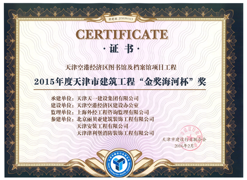 公司承接了包括寫字樓、綜合樓、酒店、商場、金融保險、醫療教育、飛機制造、軌道交通、工業企業等一大批具有社會影響力的工程項目,如:天津津匯廣場、天津泰達現代服務產業區G2地塊(泰達MSD-C區)、濱海文化商務中心、天津高銀117大廈、天津濱海喜來登酒店、天津天河城購物中心、天津市第二兒童醫院、空客A320、A330項目、新一代運載火箭產業化基地項目、津濱快速輕軌工程、天津地鐵一、二、六號線工程、天津濱海國際機場二期擴建工程項目機場工程T2航站樓、北京新機場停車樓及綜合服務樓、天津平安泰達金融中心以及天津一汽豐田汽車有限公司新能源工廠建設消防工程等項目,積累了豐富的施工及管理經驗,多次贏得業主的認可和表彰,并有7項參建工程獲得天津市建設工程“海河杯”獎、有6項參建工程獲得天津市建設工程“金獎海河杯”獎、有3項參建工程獲得“國家優質工程獎”、有15項參建工程獲得中國建設工程“魯班獎”、有2項參建工程獲得“中國安裝之星”優質獎、1項參建工程獲得北京市建筑長城杯工程金質獎。同時被中國消防協會評定為AAA信用等級企業。公司以卓越的工程品質和全方位的服務得到了社會各界的好評,在同行業中享有較高的信譽。